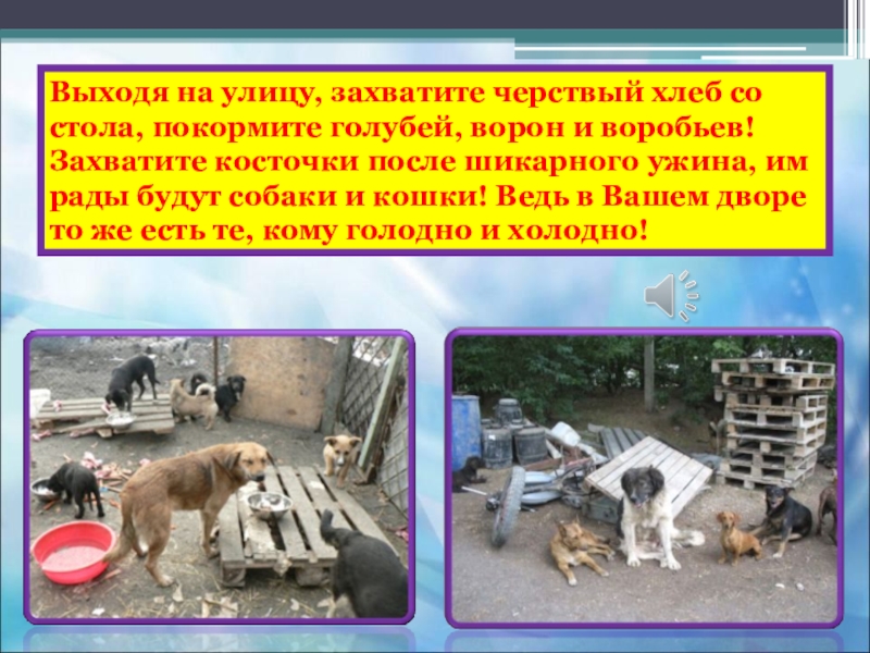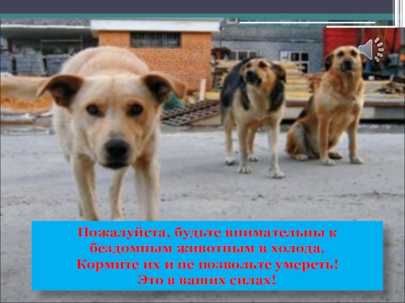 Слайд 16Пожалуйста, будьте внимательны к бездомным животным в холода.