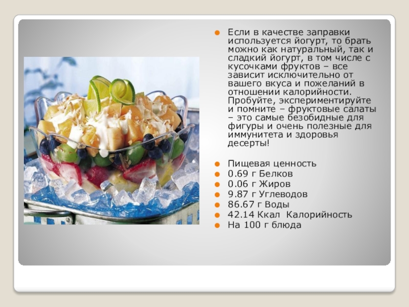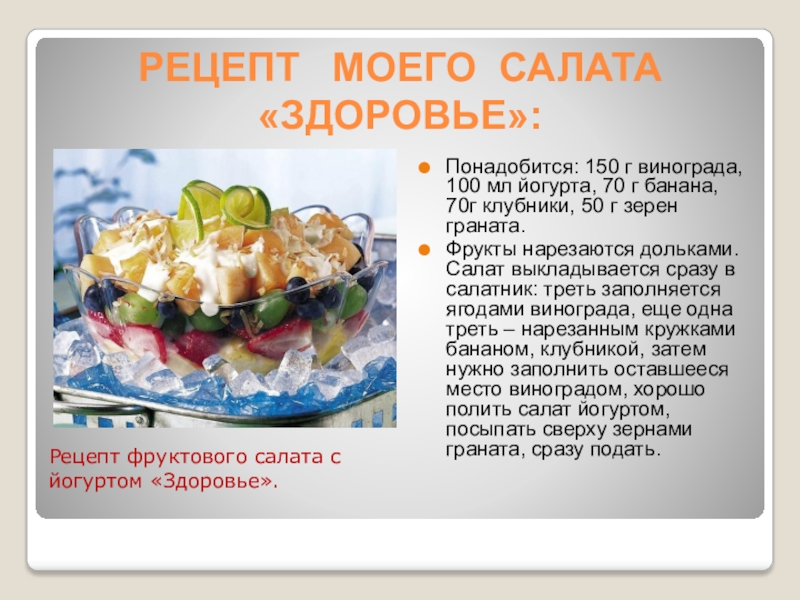 Рецепт фруктового салата с йогуртом «Здоровье».