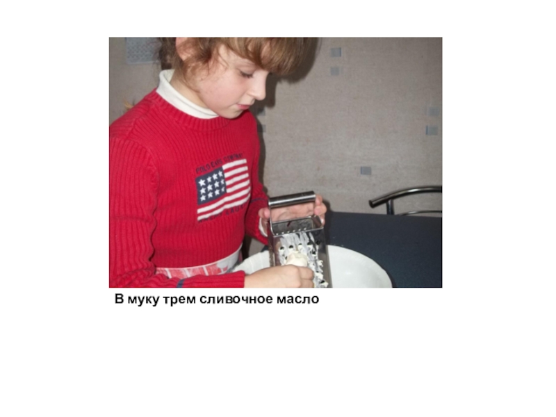 Слайд 4В муку трем сливочное масло