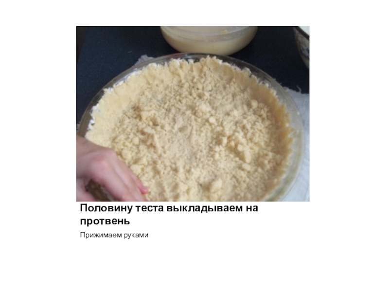 Слайд 9Половину теста выкладываем на протвень