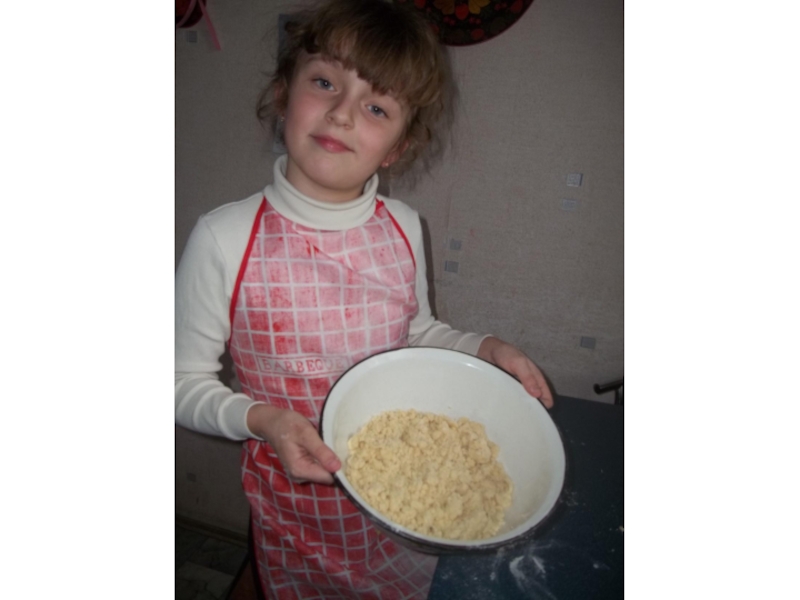 Перемешаем муку с масломПолучается песочное тесто