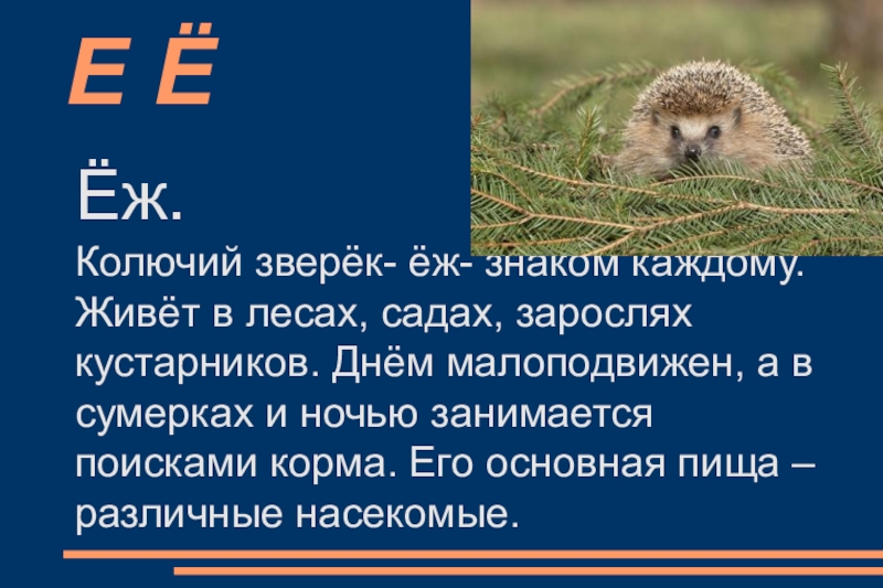 Колючий зверёк- ёж- знаком каждому. Живёт в лесах, садах, зарослях