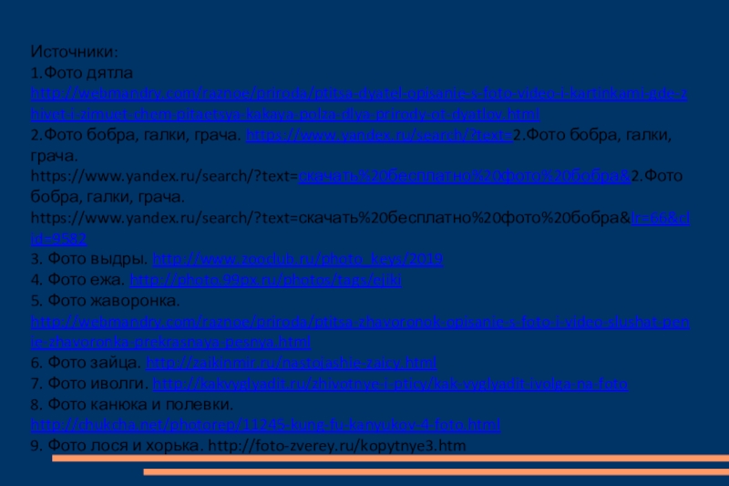 1.Фото дятла http://webmandry.com/raznoe/priroda/ptitsa-dyatel-opisanie-s-foto-video-i-kartinkami-gde-zhivet-i-zimuet-chem-pitaetsya-kakaya-polza-dlya-prirody-ot-dyatlov.html