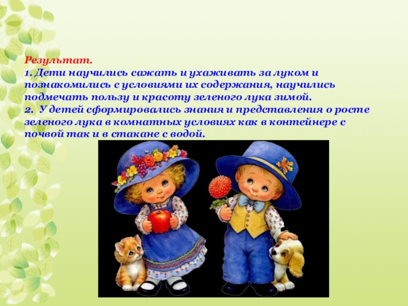 1. Дети научились сажать и ухаживать за луком и познакомились