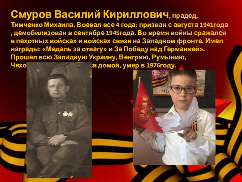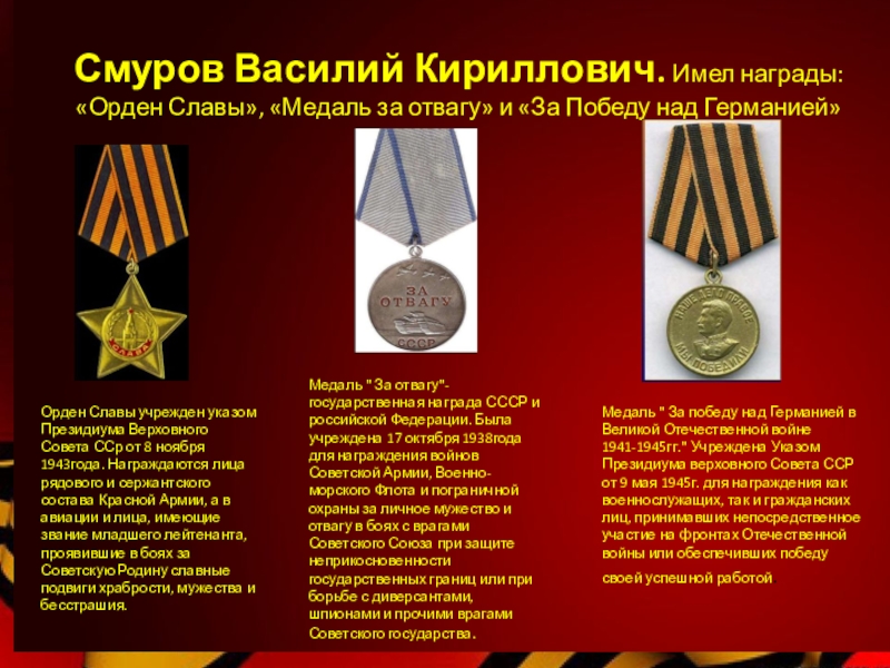 «Орден Славы», «Медаль за отвагу» и «За Победу над Германией»