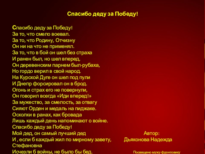 Исчезли б войны, не было бы бед. Посвящено мужу-фронтовику