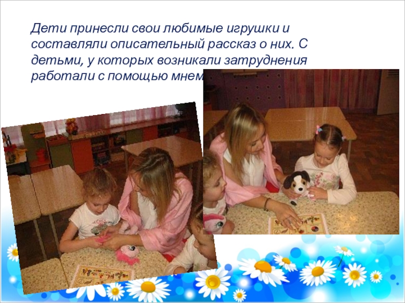Речевое развитие: Беседа о игрушках, рассказ детей «Моя любимая игрушка»(работа с мнемотаблицами)