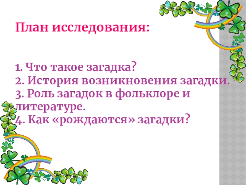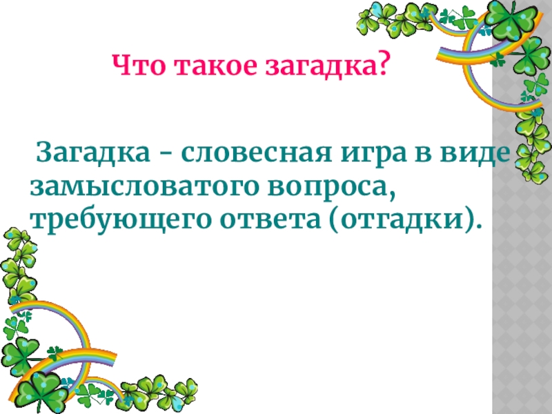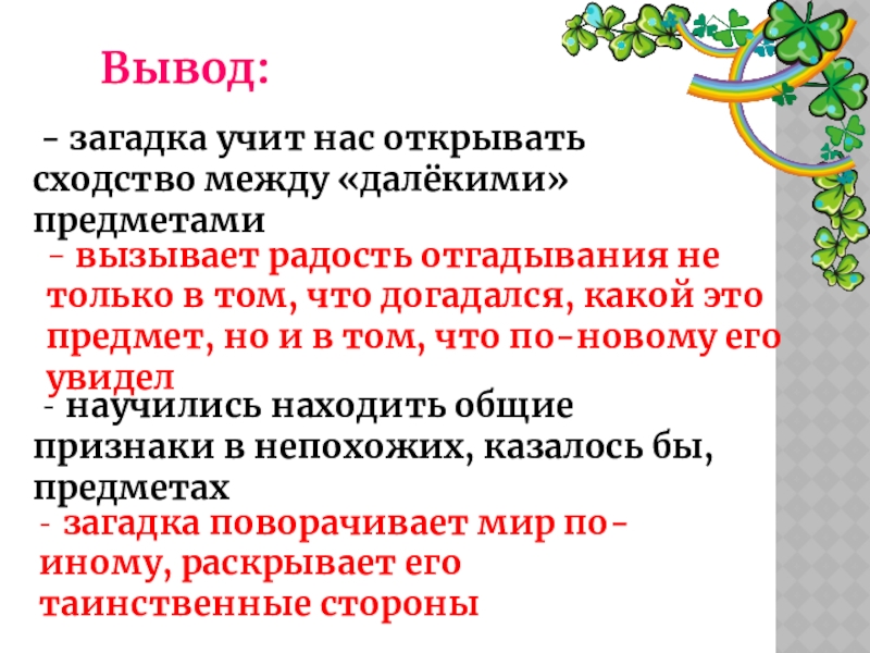 - загадка поворачивает мир по-иному, раскрывает его таинственные стороны