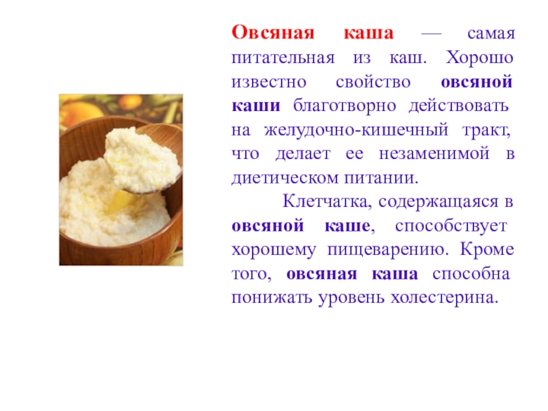 Слайд 12Овсяная каша — самая питательная из каш. Хорошо известно свойство овсяной