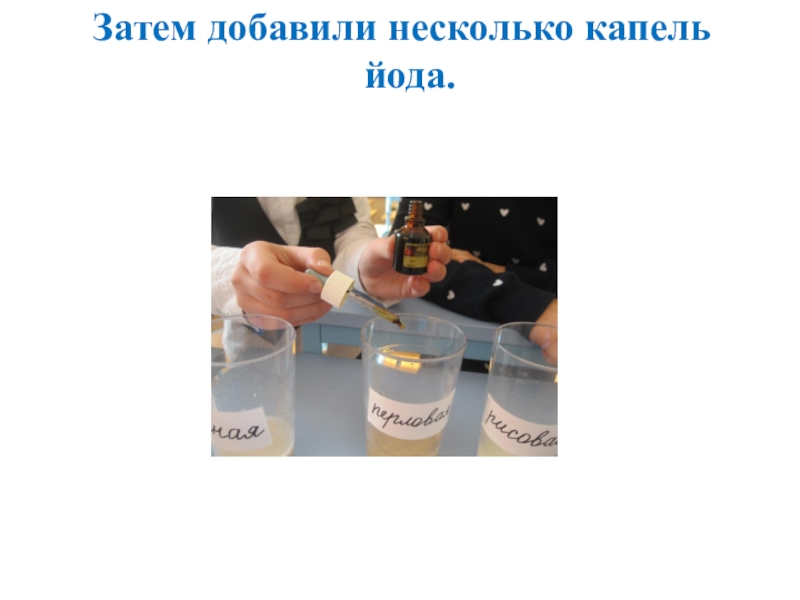 Слайд 17Затем добавили несколько капель йода.