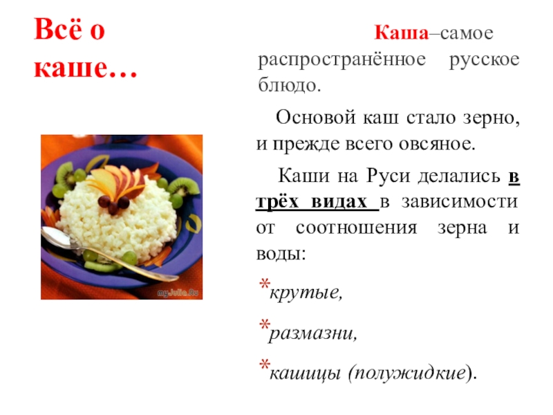 Слайд 11Всё о каше…