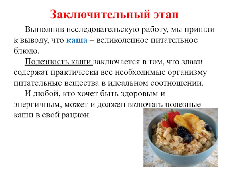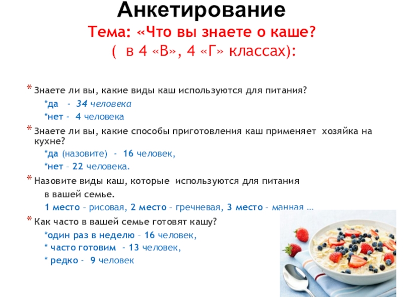 учащихся об употреблении каши.