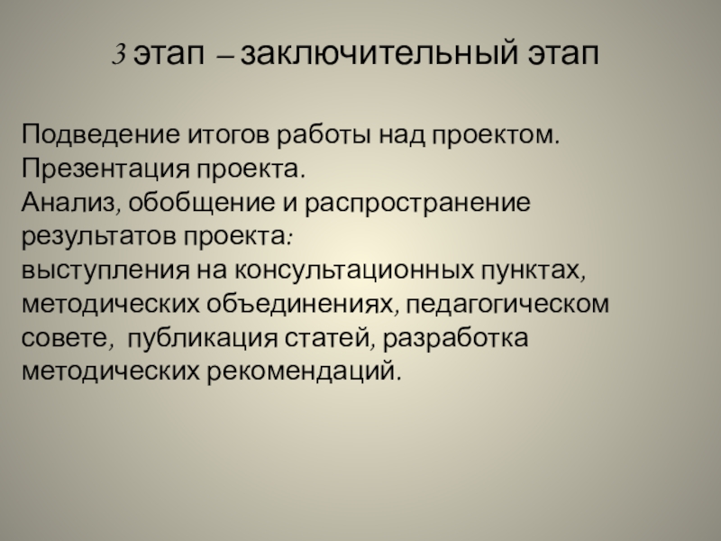 выступления на консультационных пунктах, методических объединениях, педагогическом совете, публикация статей, разработка методических рекомендаций.