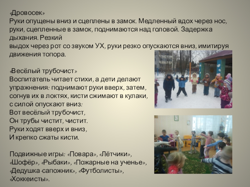 Убирает дворник сор. (наклоны вперёд с одновременными рывками рук)