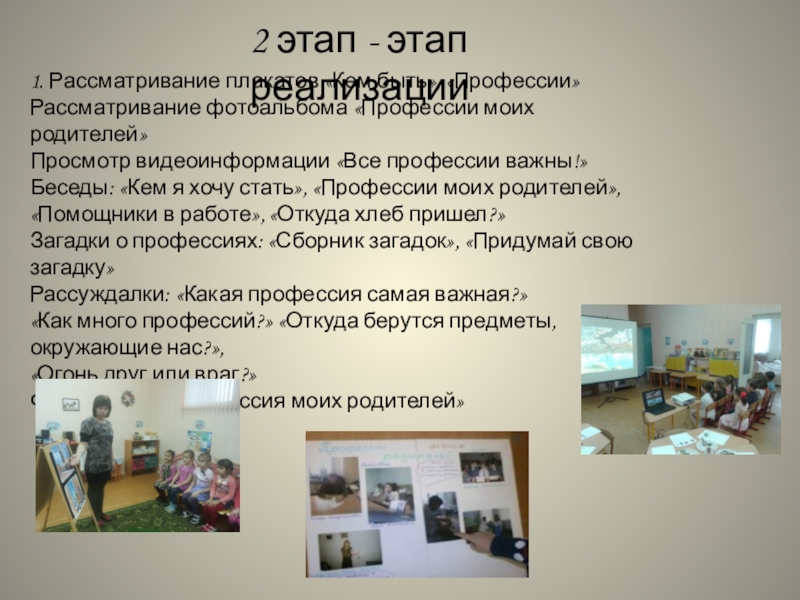 1. Рассматривание плакатов «Кем быть», «Профессии»