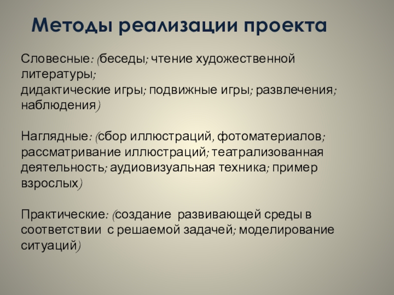 Слайд 6Словесные: (беседы; чтение художественной литературы;