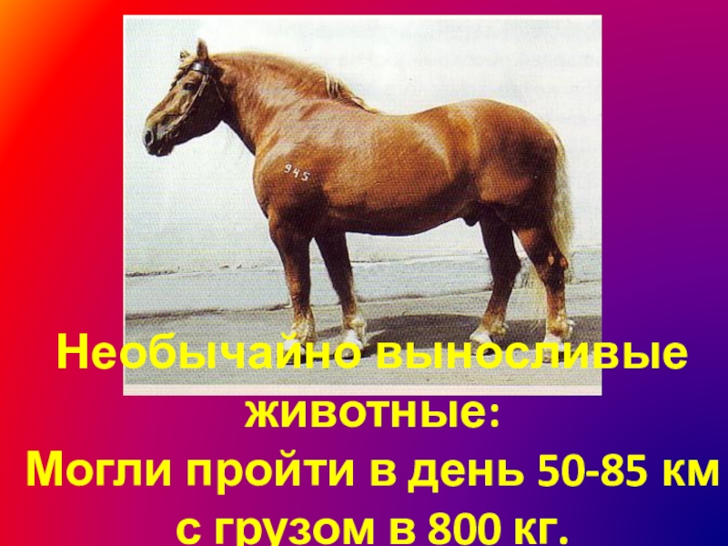 Необычайно выносливые животные:Могли пройти в день 50-85 км с грузом в 800 кг.