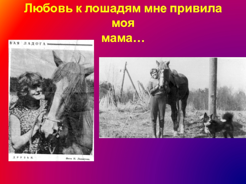 Слайд 7Любовь к лошадям мне привила моя мама…