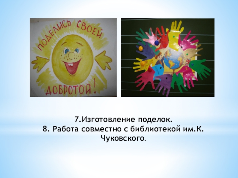 Слайд 117.Изготовление поделок. 8. Работа совместно с библиотекой им.К.Чуковского.