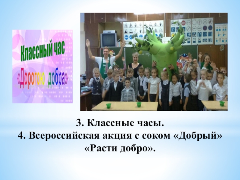 3. Классные часы. 4. Всероссийская акция с соком «Добрый» «Расти добро».