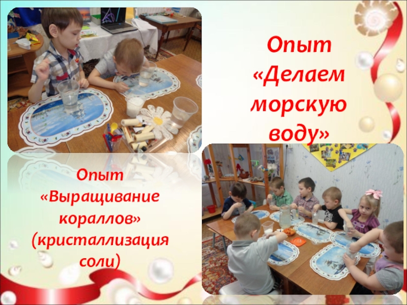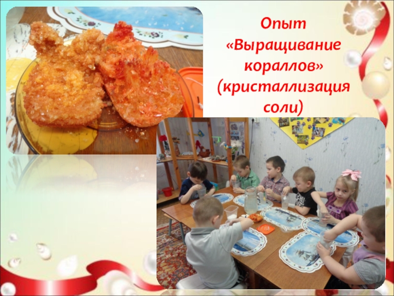 Опыт«Выращивание кораллов» (кристаллизация соли)Опыт«Делаем морскую воду»