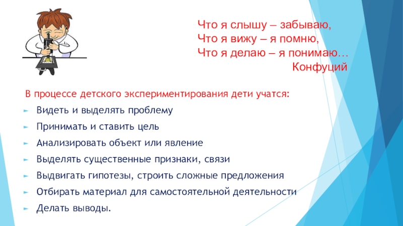 В процессе детского экспериментирования дети учатся: