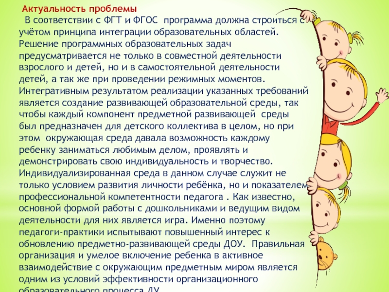 участие педагогов, детей и родителей в преобразовании предметно – развивающей среды.