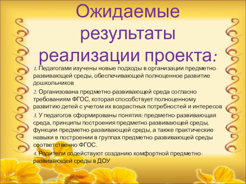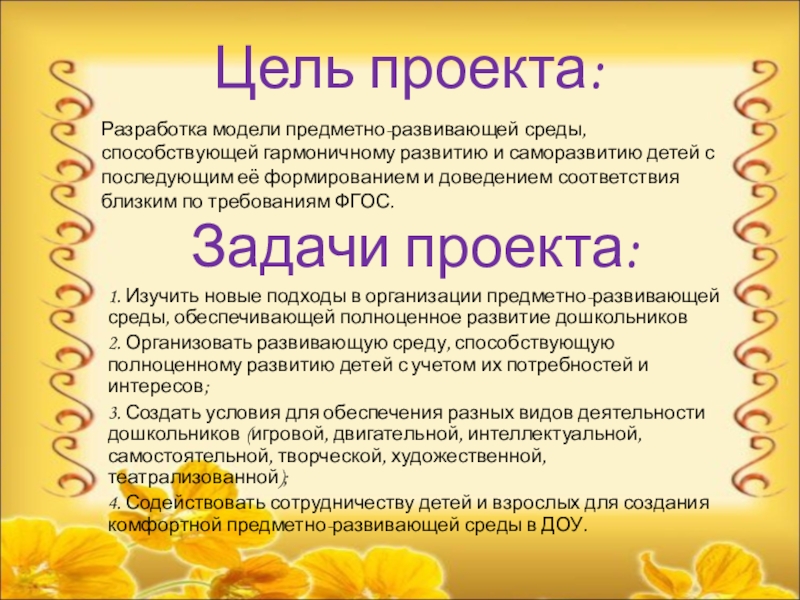 1. Изучить новые подходы в организации предметно-развивающей среды, обеспечивающей полноценное развитие дошкольников