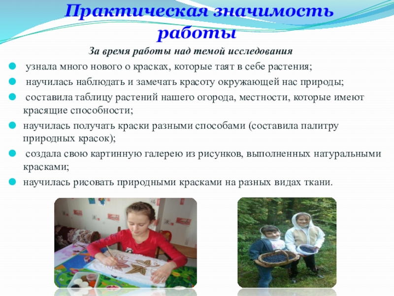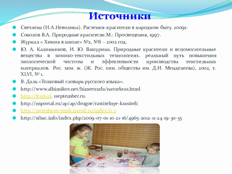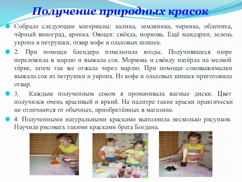 - Получение природных (естественных красок) в домашних условиях.