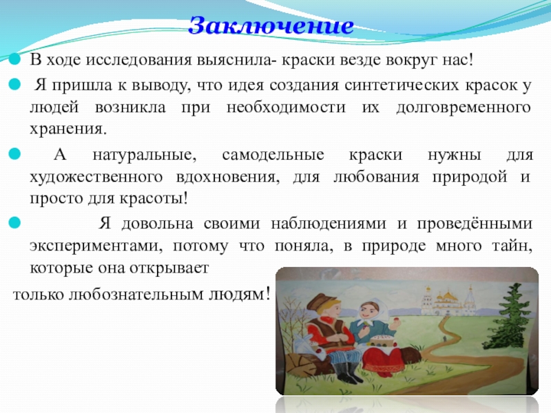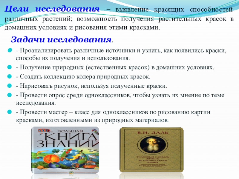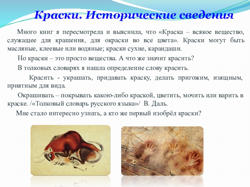 - Проанализировать различные источники и узнать, как появились краски, способы их получения и использования.