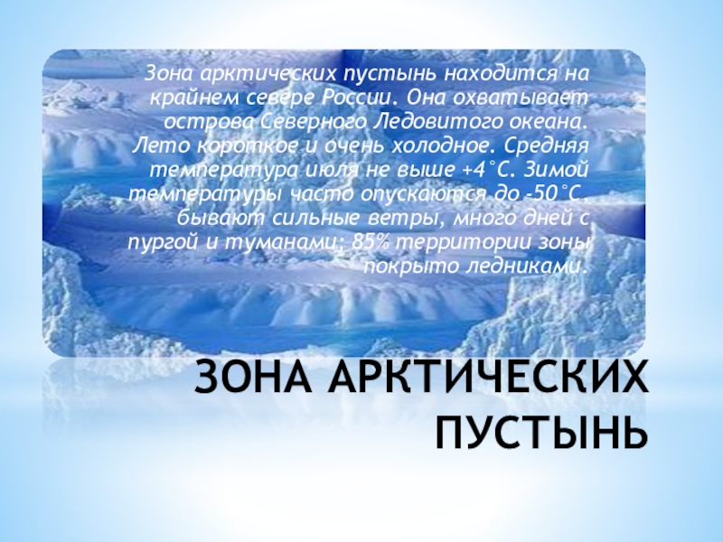 Слайд 9ЗОНА АРКТИЧЕСКИХ ПУСТЫНЬ
