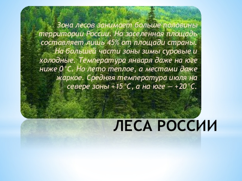 Зона лесов занимает больше половины территории России. Но заселенная площадь