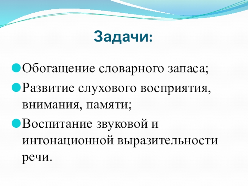 Развитие слухового восприятия, внимания, памяти;