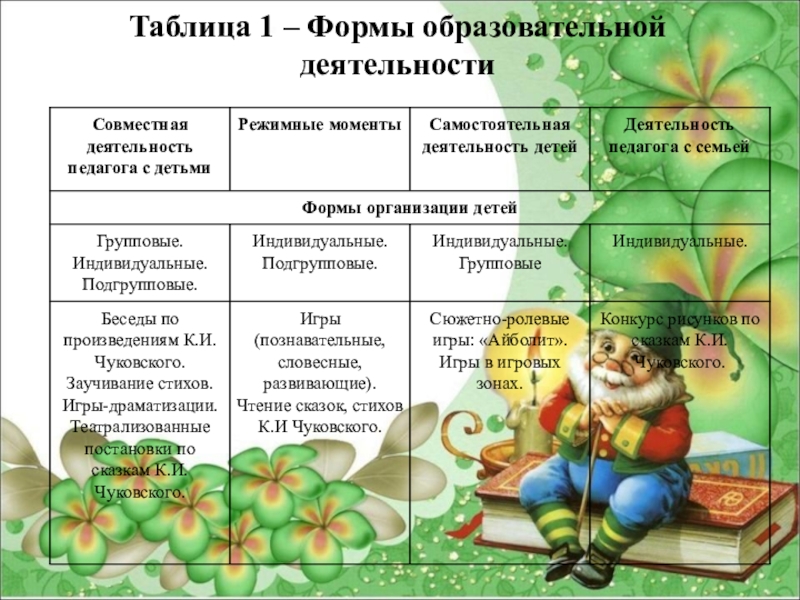 Слайд 8Таблица 1 – Формы образовательной деятельности
