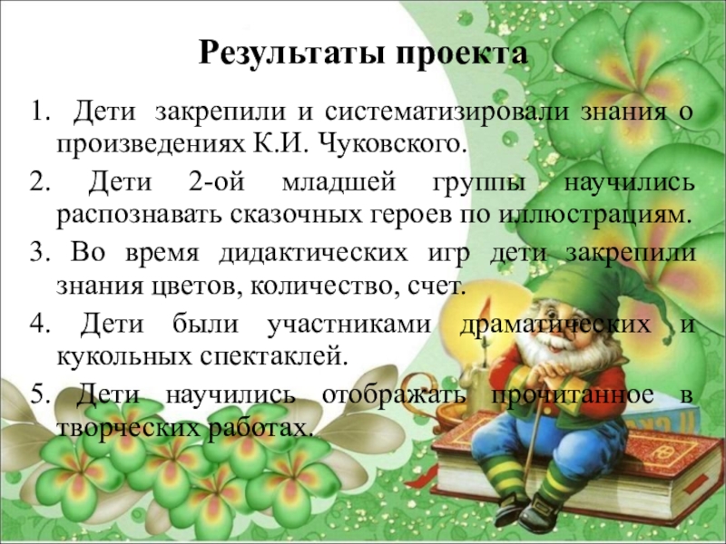 1. Дети закрепили и систематизировали знания о произведениях К.И. Чуковского.