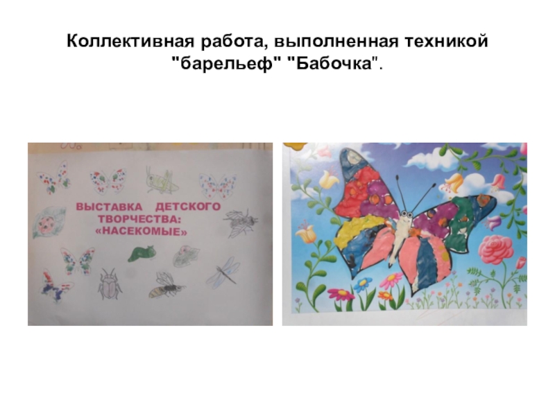 Слайд 14Коллективная работа, выполненная техникой "барельеф" "Бабочка".