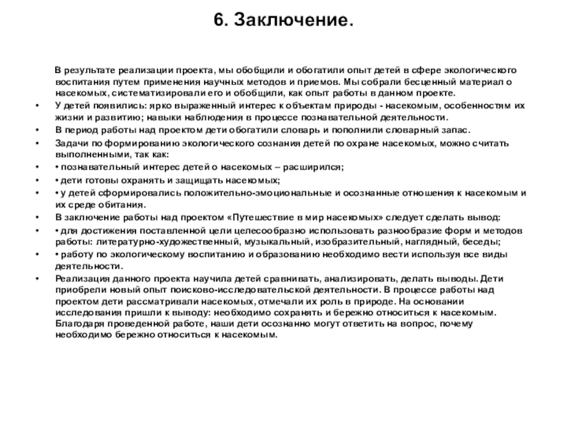 В заключение работы над проектом «Путешествие в мир насекомых» следует сделать вывод: