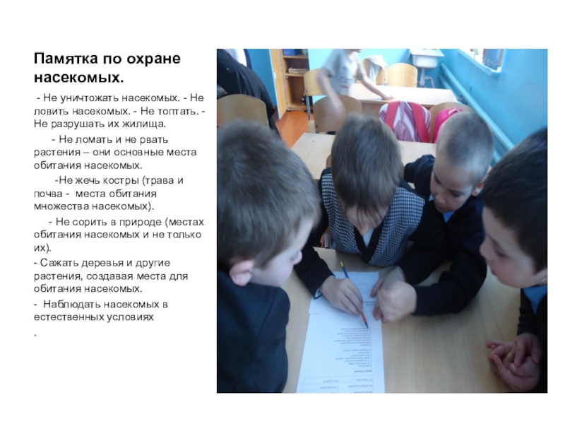 насекомых. - Не топтать. - Не разрушать их жилища.