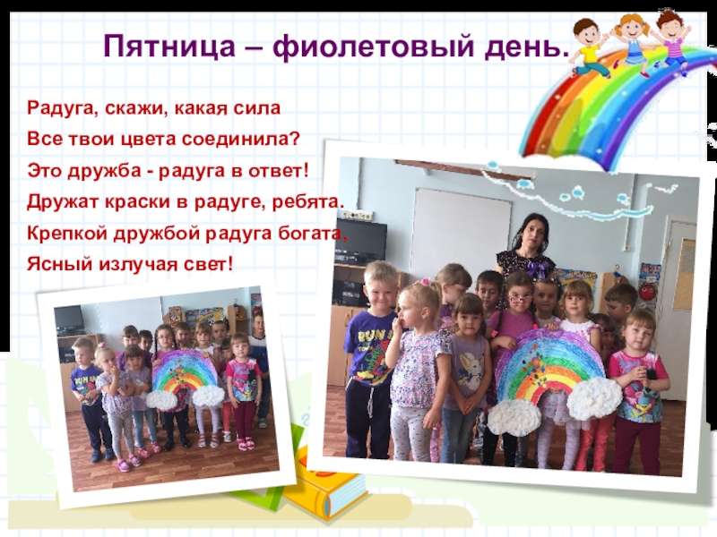 Помочь запомнить расположение цветов радуги, развивать речь и словарный запас ребят.