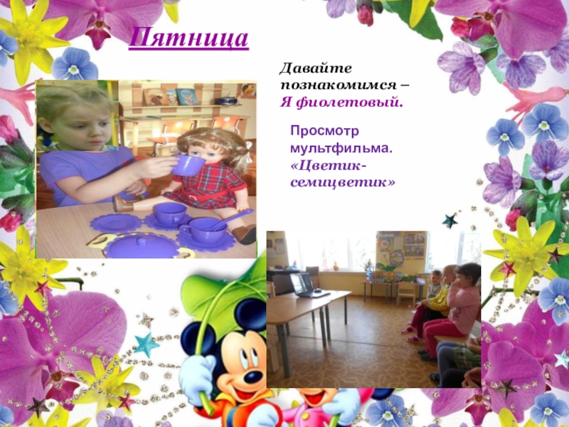Пятница Давайте познакомимся – Я фиолетовый.Просмотр мультфильма. «Цветик-семицветик»