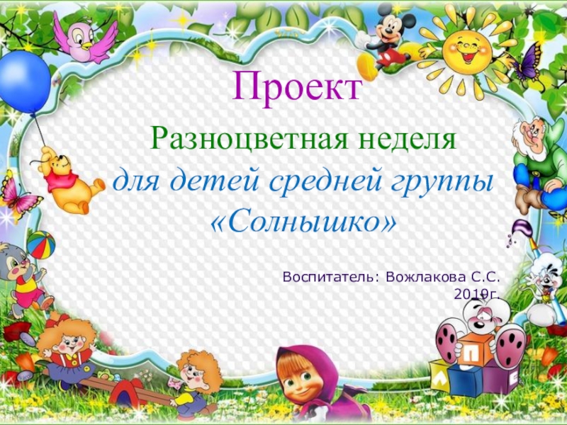 ПроектРазноцветная неделя для детей средней группы «Солнышко» Воспитатель: Вожлакова С.С.2019г.