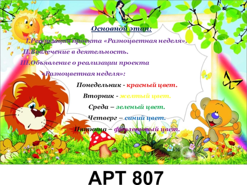 Презентация, доклад проекта Разноцветная неделя для детей средней группы