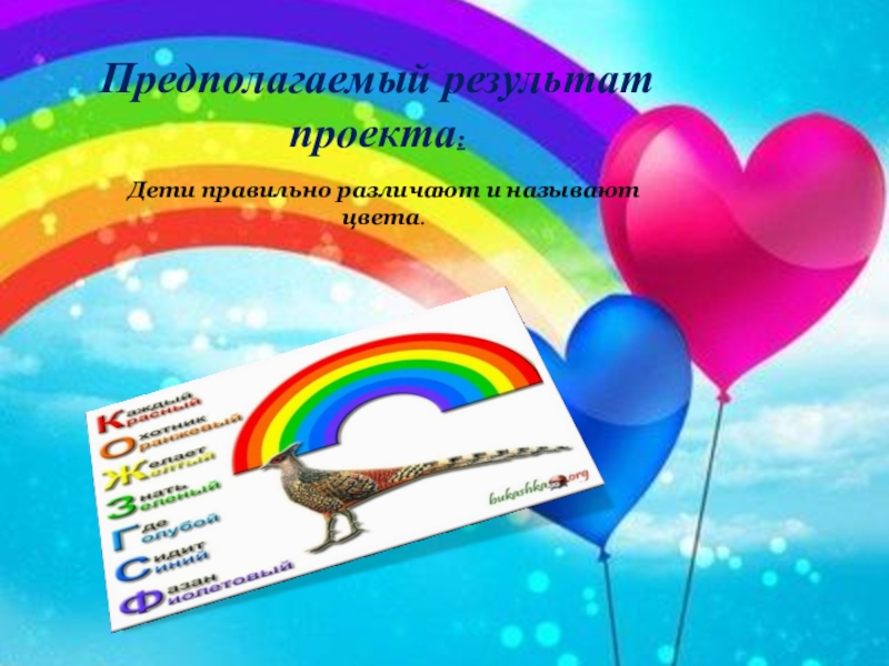 Предполагаемый результат проекта: Дети правильно различают и называют цвета.