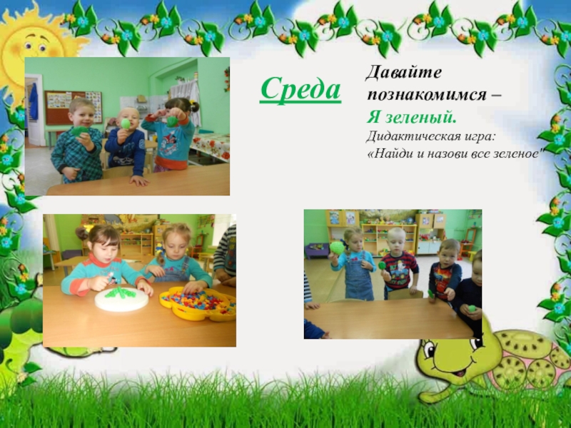 Среда Давайте познакомимся – Я зеленый. Дидактическая игра:«Найди и назови все зеленое