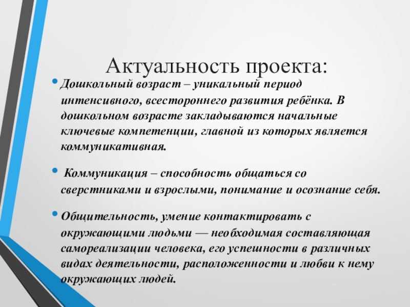 В дошкольном возрасте закладываются начальные ключевые компетенции, главной из которых является коммуникативная.