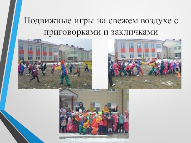 Слайд 9Подвижные игры на свежем воздухе с приговорками и закличками