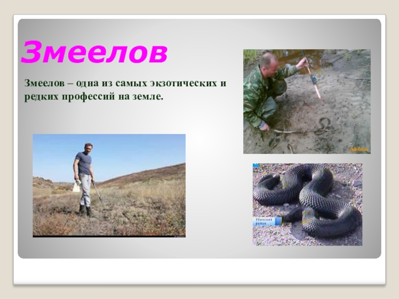 ЗмееловЗмеелов – одна из самых экзотических и редких профессий на земле.