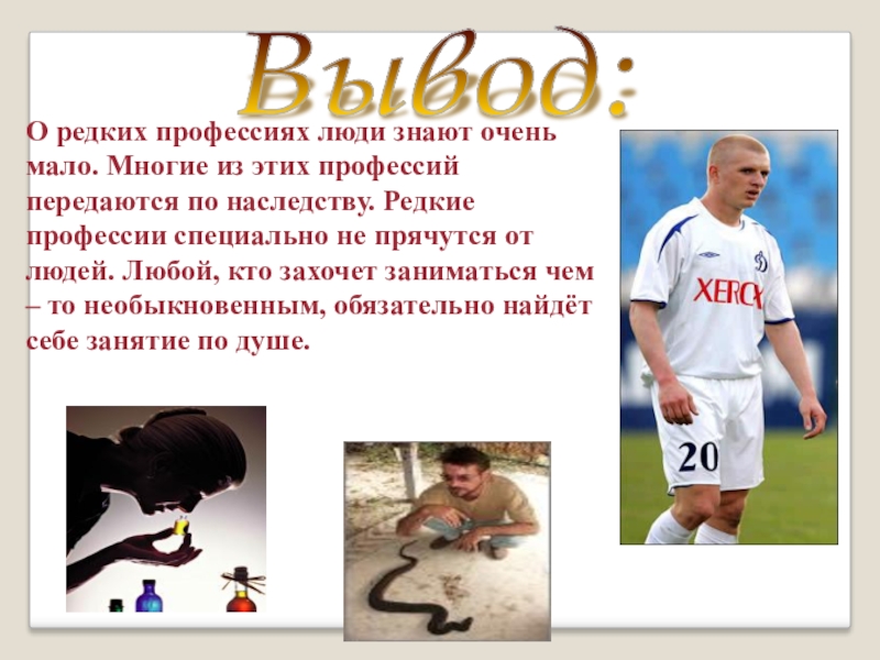 Вывод: О редких профессиях люди знают очень мало. Многие из этих профессий передаются по наследству. Редкие профессии