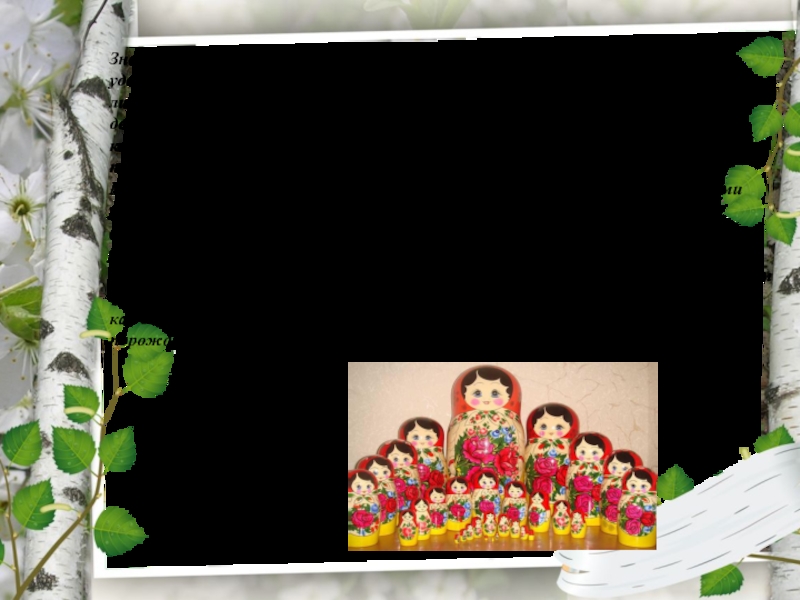 Слайд 8-дети знают, как выглядит русская народная игрушка – матрешка; какие виды