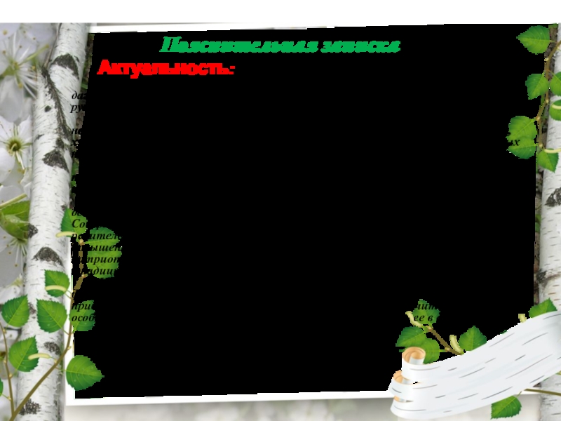 Сейчас к нам постепенно возвращается национальная память, и мы по - новому начинаем относиться к старинным обычаям и традициям, фольклору, художественным промыслам, декоративно – прикладному искусству, в которых народ оставил нам самое ценное из своих культурных достижений.
